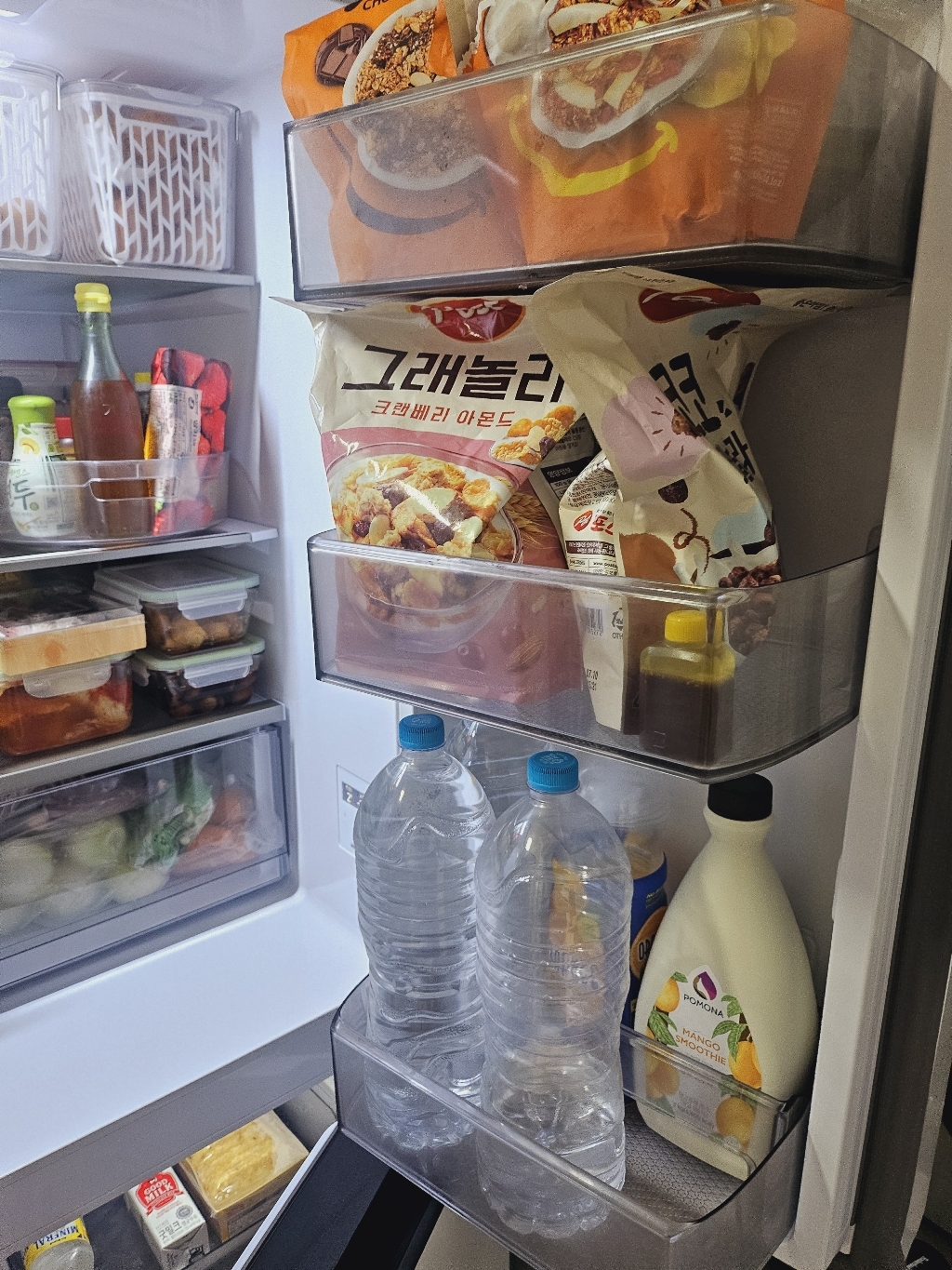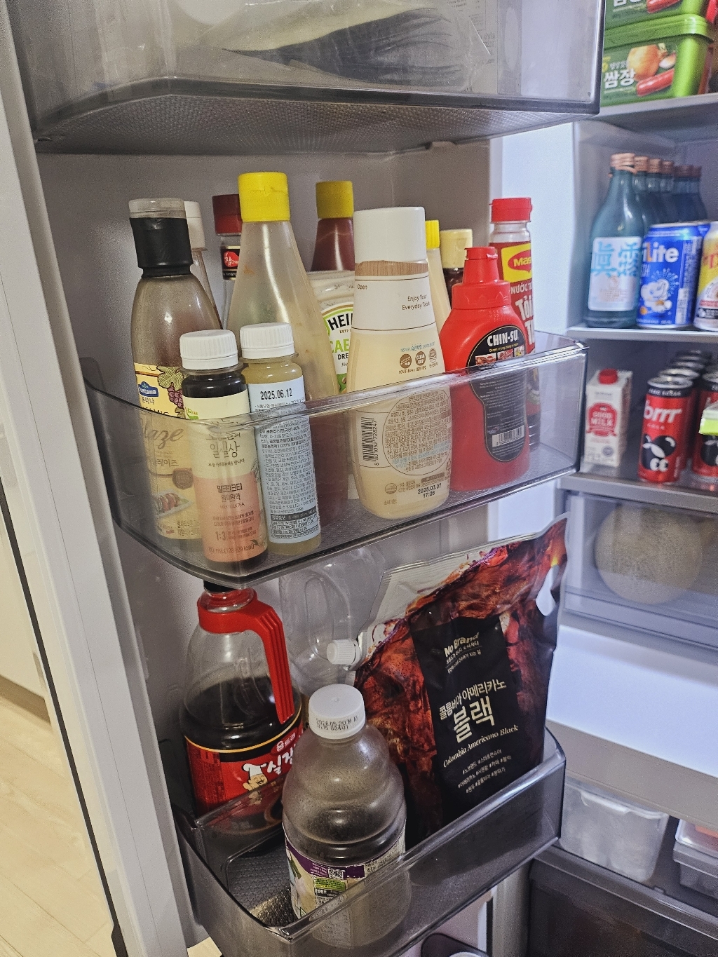 그래서 문짝 선반에는 너무 무거운 액체류는 많이 안 두려고 합니다