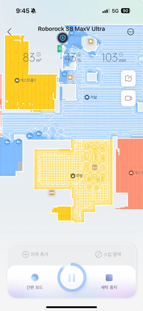 청소를 진행 할 수록 집안 구석구석을 더 정확하게 매핑해서 점점 더 빈틈없이 청소하는 느낌입니다.