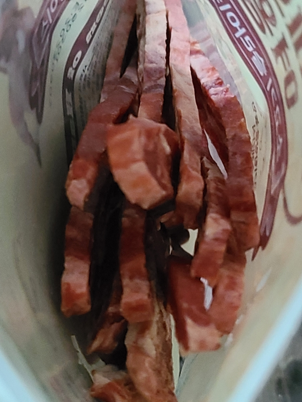 소고기 슬라이스해서 말린 모양입니다. 육포랑 비슷하고 냄새가 너무 맛있는 냄새라 사람인 저도 가끔 먹고싶단 생각이 들때가 있습니다 ㅎㅎ